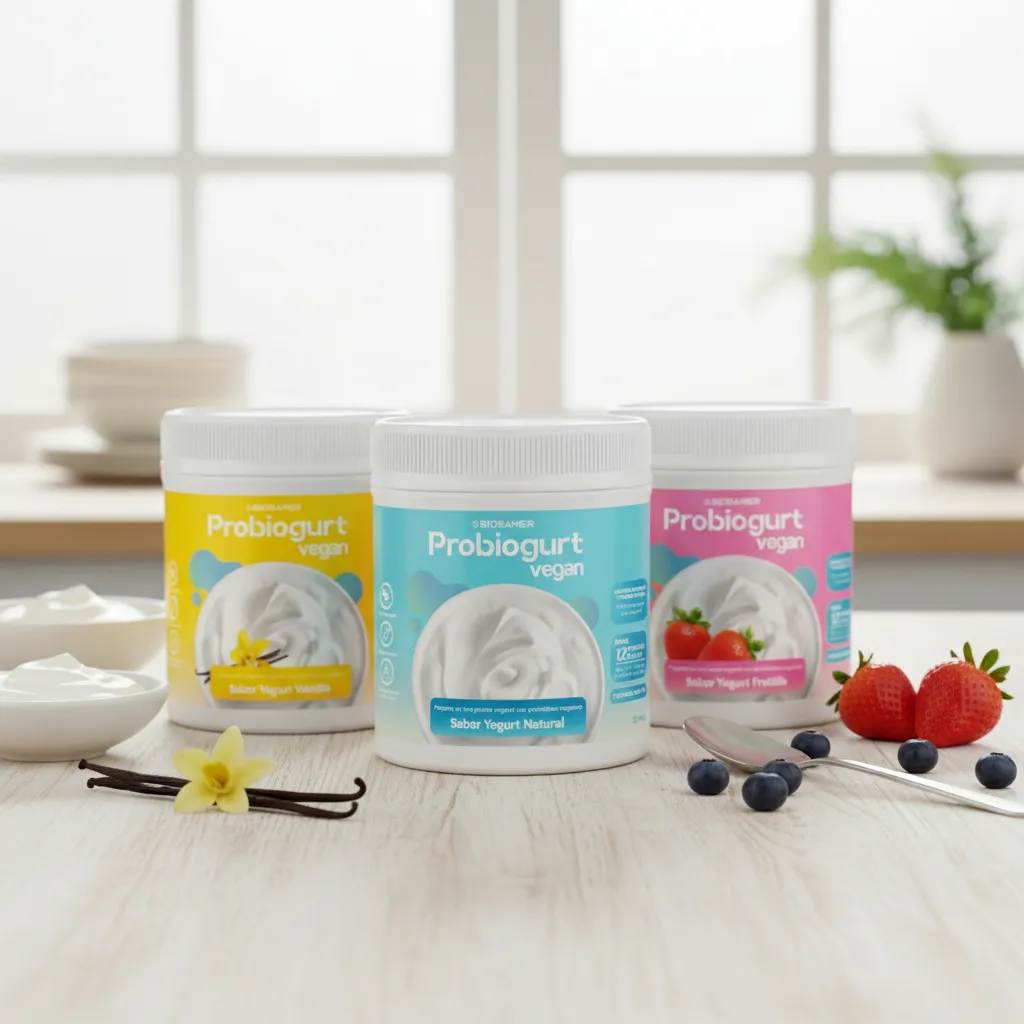 Experimente o delicioso Bragurt Vegetal Probióticos Este alimento vegano fermentado em pó é 100% vegetal, sendo elaborado a partir do leite de coco e soja.